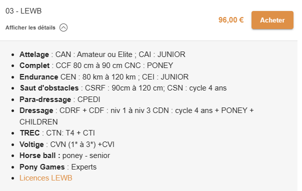 En Jumping, la licence minimale pour faire du 90 cm est la 03 mais vous pouvez toujours faire du 80 cm avec une 03.